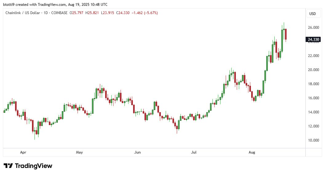 On Monday, Chainlink (LINK) crossed the $26 mark for the first time in several months, driven by a notable increase in on-chain activity.